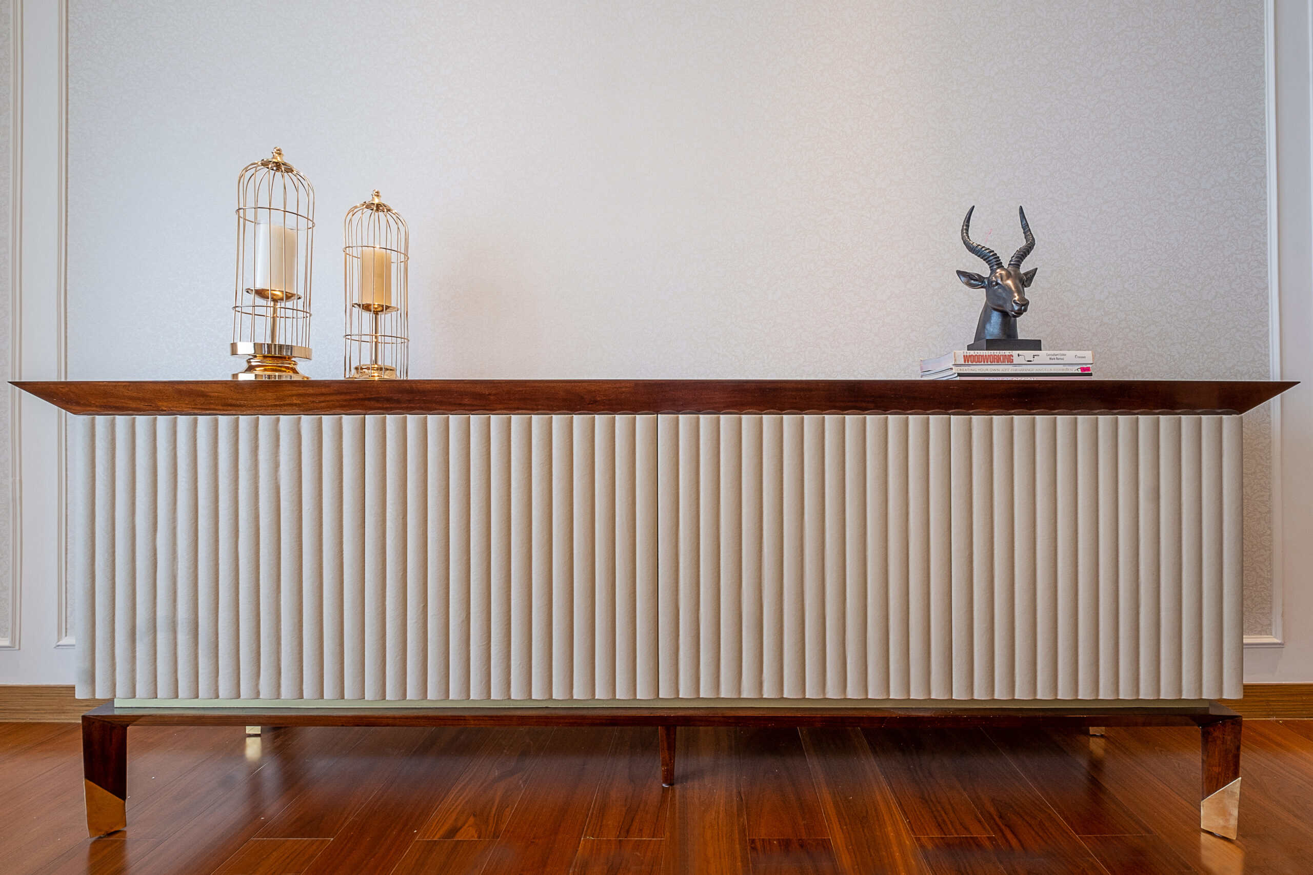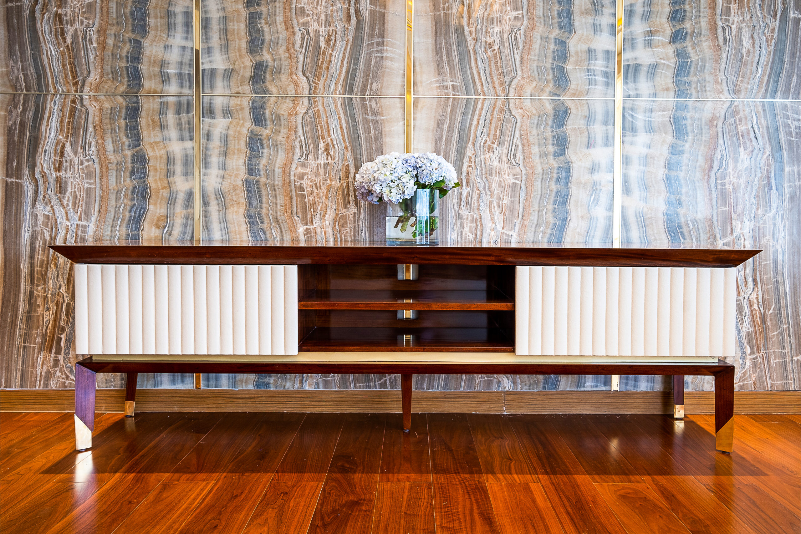 The Novara sideboard blends with its intricate inlay work and brass accessories blends well in both traditional and modern spaces.