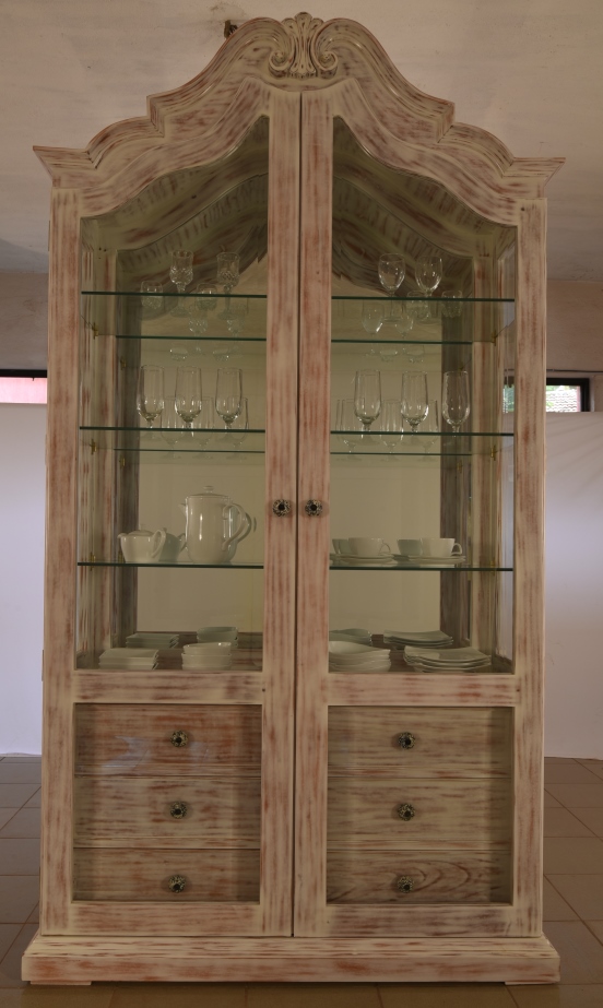The Gable top display cabinet has a presence of grandeur and versatile as it fits nicely in to smaller spaces.