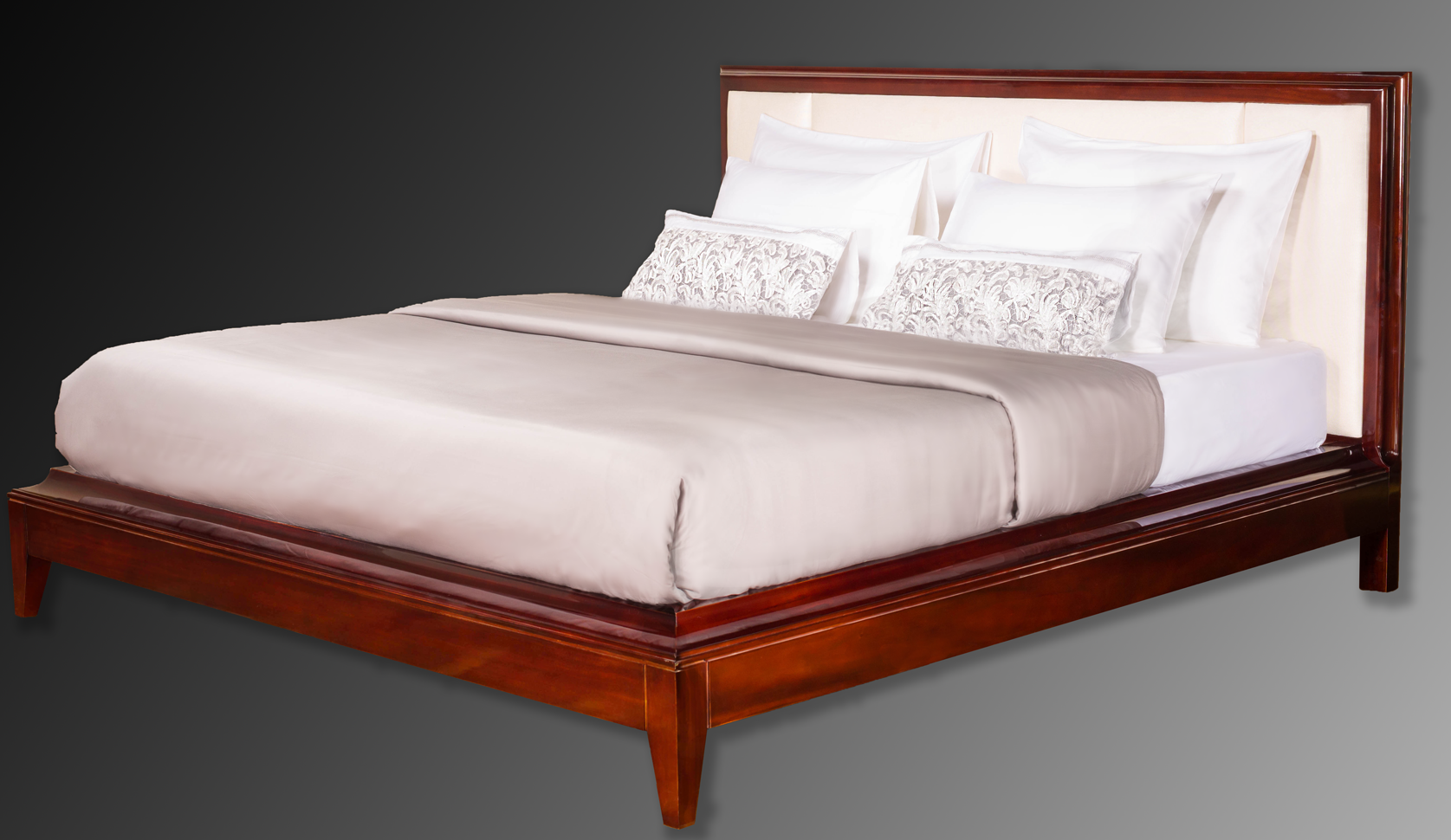 The soft curve of the headboard with its simple Satin wood beading and the elegant bed base with an upholstered frame, gives this graceful design a lot of character.