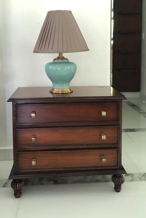 The Troy Bedside Cupboard is expertly crafted from solid mahogany for lasting beauty and durability. This elegant piece features three spacious drawers, providing ample storage for your nighttime essentials while keeping your space organized and clutter-free.