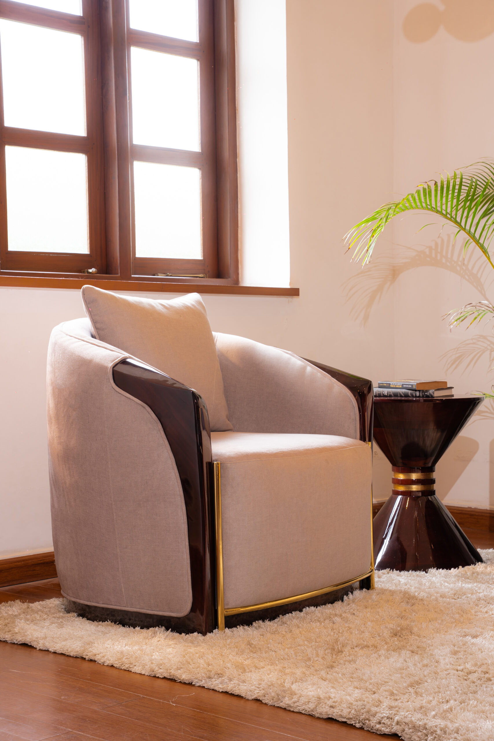 The Cairo accent chair is a stunning embodiment of modern design and exceptional craftsmanship. This chair captivates with its unique silhouette, featuring bold geometric lines and an innovative form that sets it apart from traditional seating.