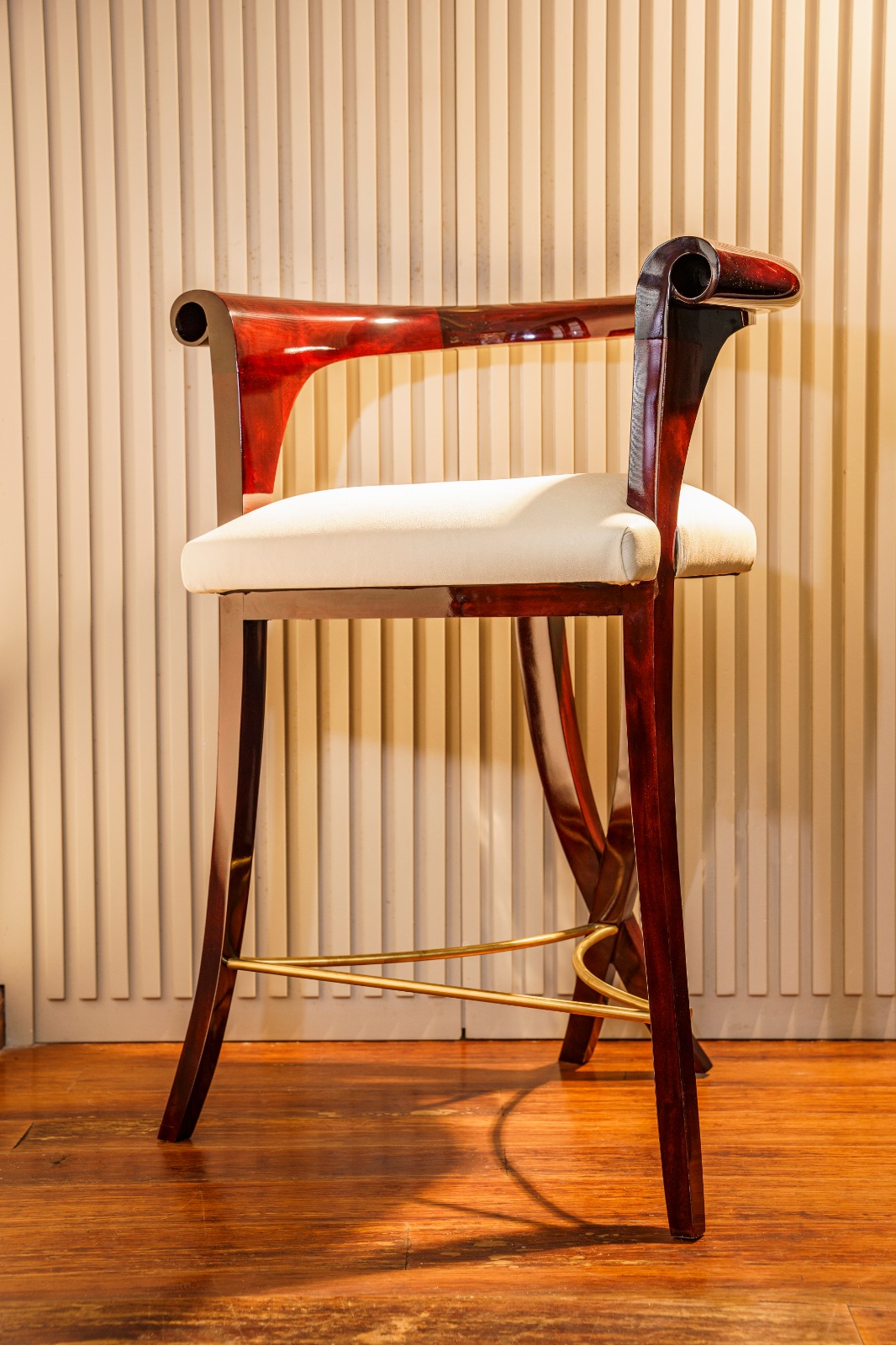 The Phoenix bar stool is a perfect blend of contemporary design and luxurious flair. Crafted with a sleek silhouette, what truly sets this piece apart is the elegant brass accents, adding a touch of sophistication and warmth.