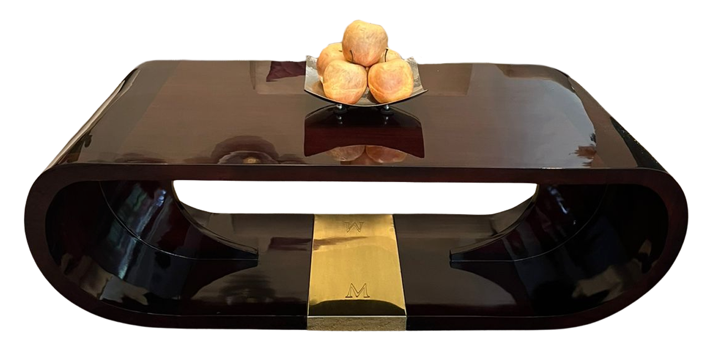 The elegant Paris coffee table is meticulously crafted from solid mahogany and adorned with exquisite solid brass features. This stunning piece is finished with our signature stain resistant lacquers and seamlessly blends timeless design with modern sophistication.