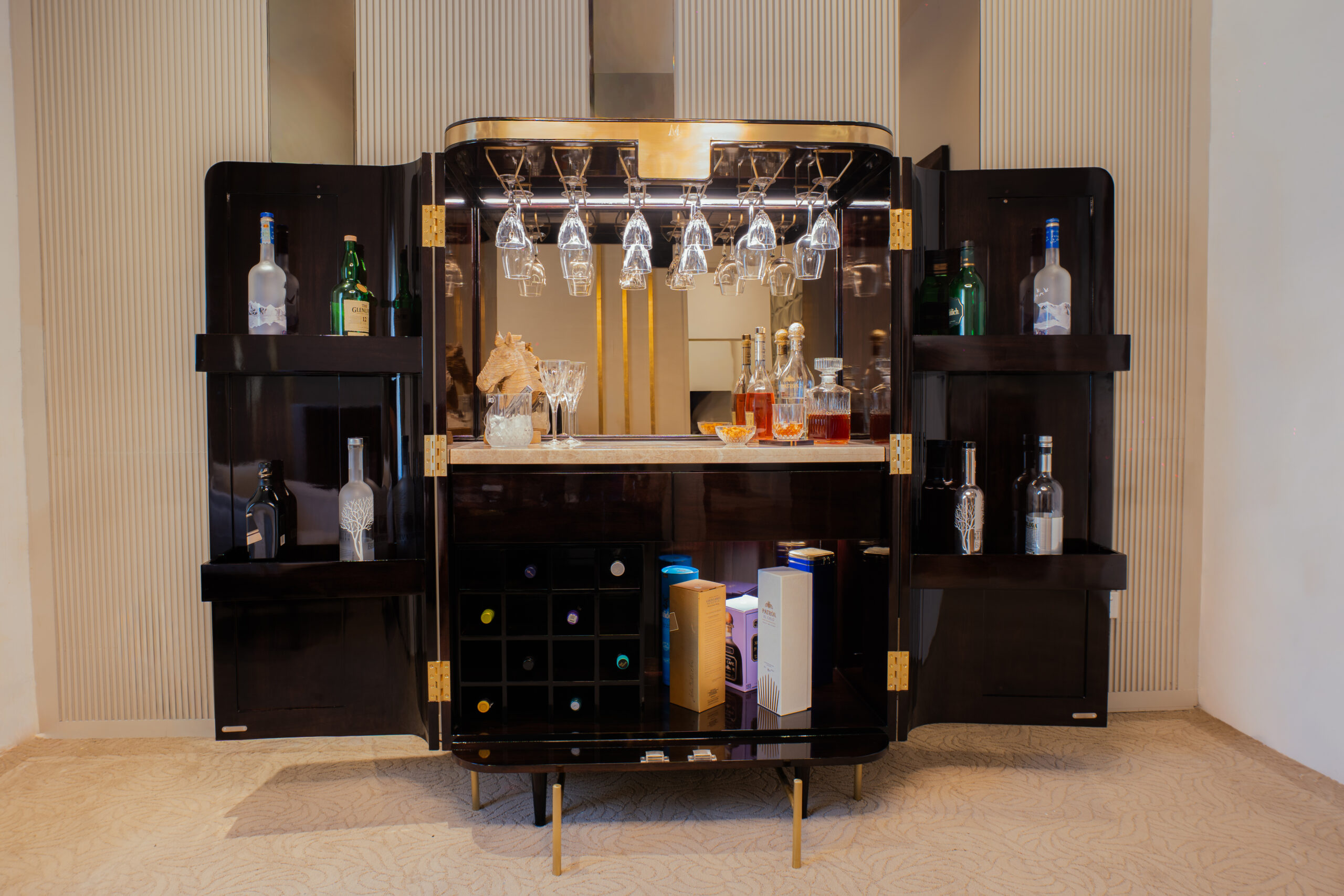 Our innovative Phoenix bar unit, is a perfect blend of style and functionality. Featuring an adjustable countertop, this versatile piece can be customized to fit any space, whether you’re hosting a large gathering or enjoying a cozy evening at home. The thoughtfully designed pull-out liquor storage cabinet provides convenient access to your favorite spirits and glassware, ensuring everything you need is at your fingertips.